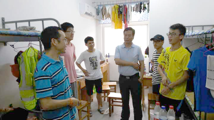 13日下午,陈飞一行到学生宿舍与同学们亲切交谈,询问同学们在实习基地的学习和生活状况,交流实习的收获和感受。陈飞勉励大家要珍惜野外实习的宝贵机会,发扬艰苦朴素、求真务实的校训精神,在实习中打下扎实基础,增强专业知识。在与老师们座谈中了解到,秭归近期为多雨天气,陈飞强调,各实习队要根据天气情况适时调整实习路线,避免雨后去有滑坡风险的危险路线,确保实习安全。