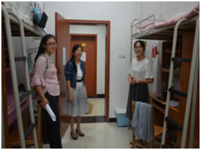 倪晓阳和郭小玉前往63栋宿舍看望新生。在与女生的交谈中,倪晓阳说:“要做好迎接大学生活的准备,按照时间段分期做好学业规划,全力以赴,努力实现自己的大学目标”