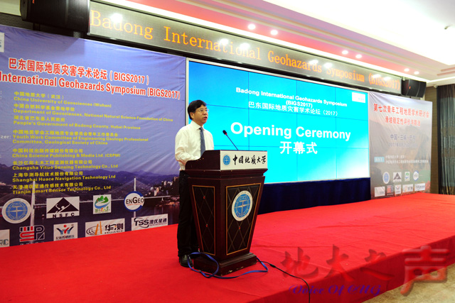我校党委副书记唐辉明主持论坛开幕式并代表学校致辞,巴东县人民政府县长郭玲、国家自然科学基金委地球科学部二处主任熊巨华、国土资源部地质环境司地质灾害防治处处长李晓春分别致辞,恩施州人民政府副州长程水源宣布论坛开幕。