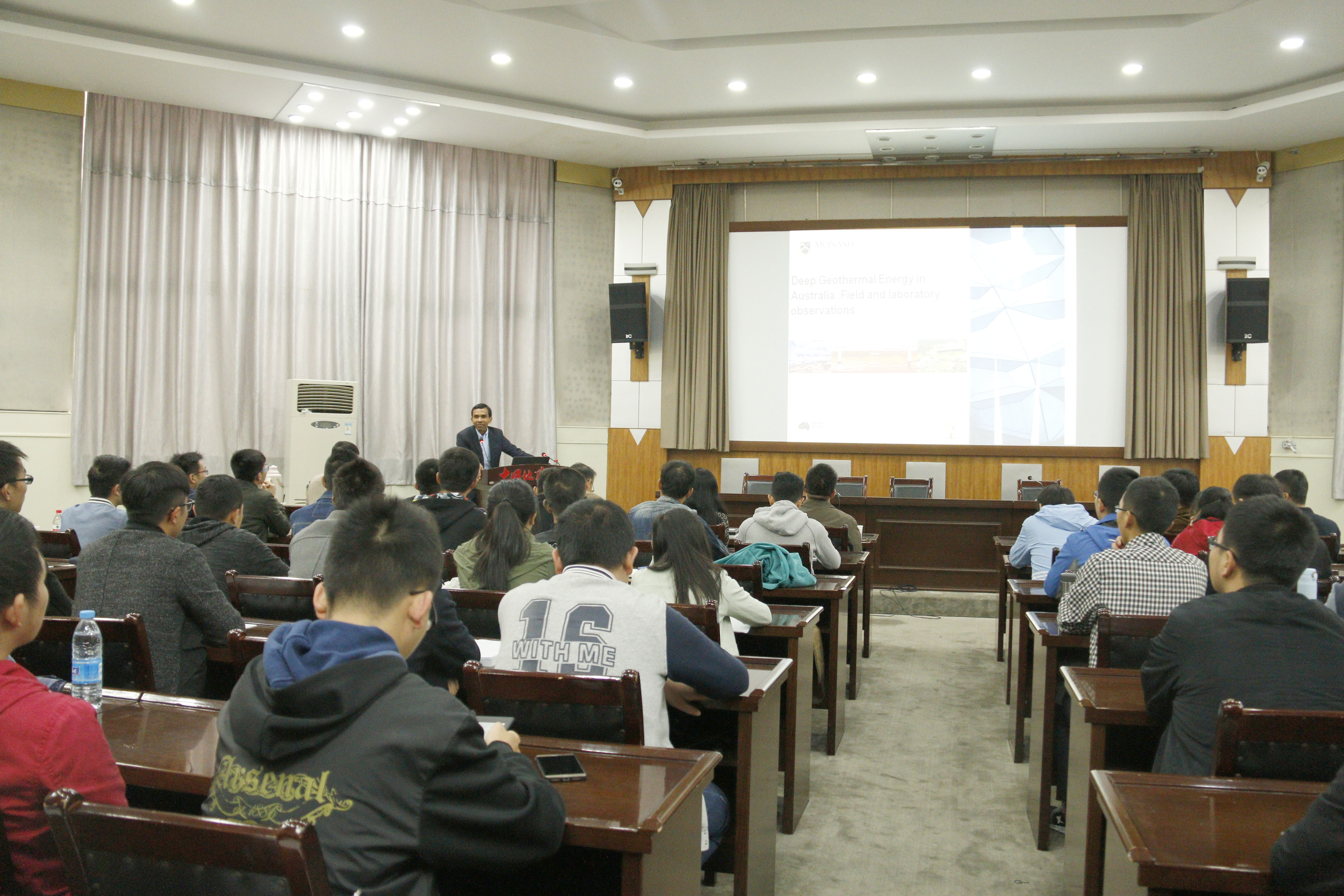 10月17日下午,澳大利亚莫纳什大学深部地球能源实验室主任Ranjith Pathegama Gamage教授来校作了主题为“Enhanced Geothermal Energy prospects in Australia: Field and laboratory observations”的学术报告。欧美成人精品欧美一级乱黄院长焦玉勇教授主持了报告会,学院200余名师生聆听了报告。
