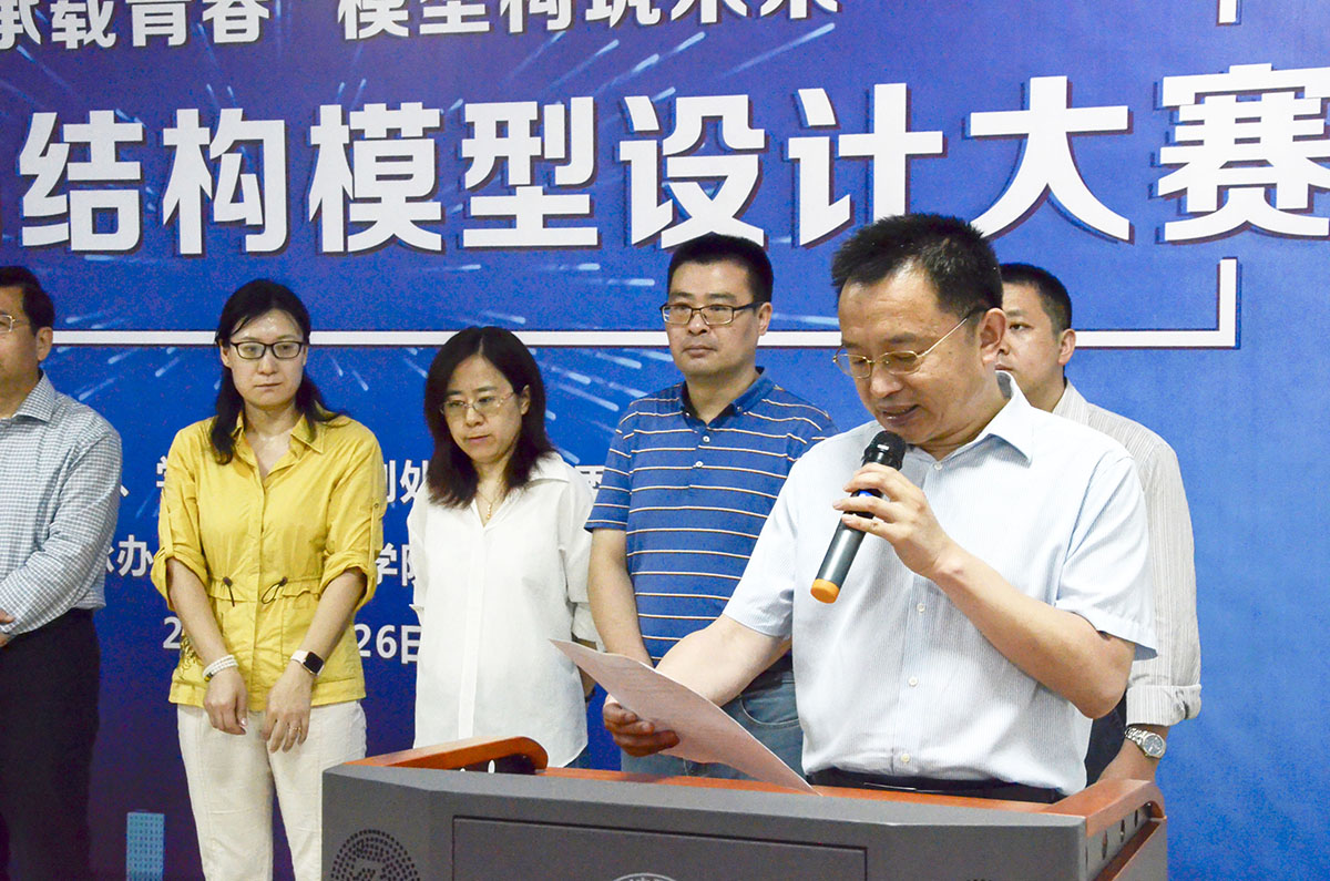 焦玉勇致开幕辞。他介绍,全国大学生结构设计竞赛是教育部确定的全国九大大学生学科竞赛之一,学院连续十四年举办结构模型设计大赛,并作为省赛暨国赛分区赛的校内选拔赛,旨在提升学生土木建筑专业知识,增强学生分析能力、设计能力、实践能力,培养学生建筑美学素养。2019年赛题更新、制作更难,他鼓励参赛团队专心致志、沉着冷静、不惧挑战,取得好成绩。