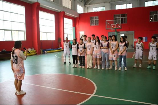 最后,师生篮球赛正式开始。主持人介绍首发队员,他们分别是教师队的陈胜、郑罗斌、高晓东、程旬和张伟,学生队的杨明、代钊恺、阿依巴特、王俊超以及熊秋阳。随即,双方进行了紧张激烈的角逐,最终学生篮球队以70:68的比分获胜。