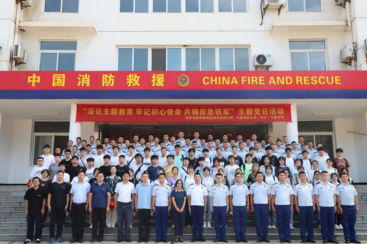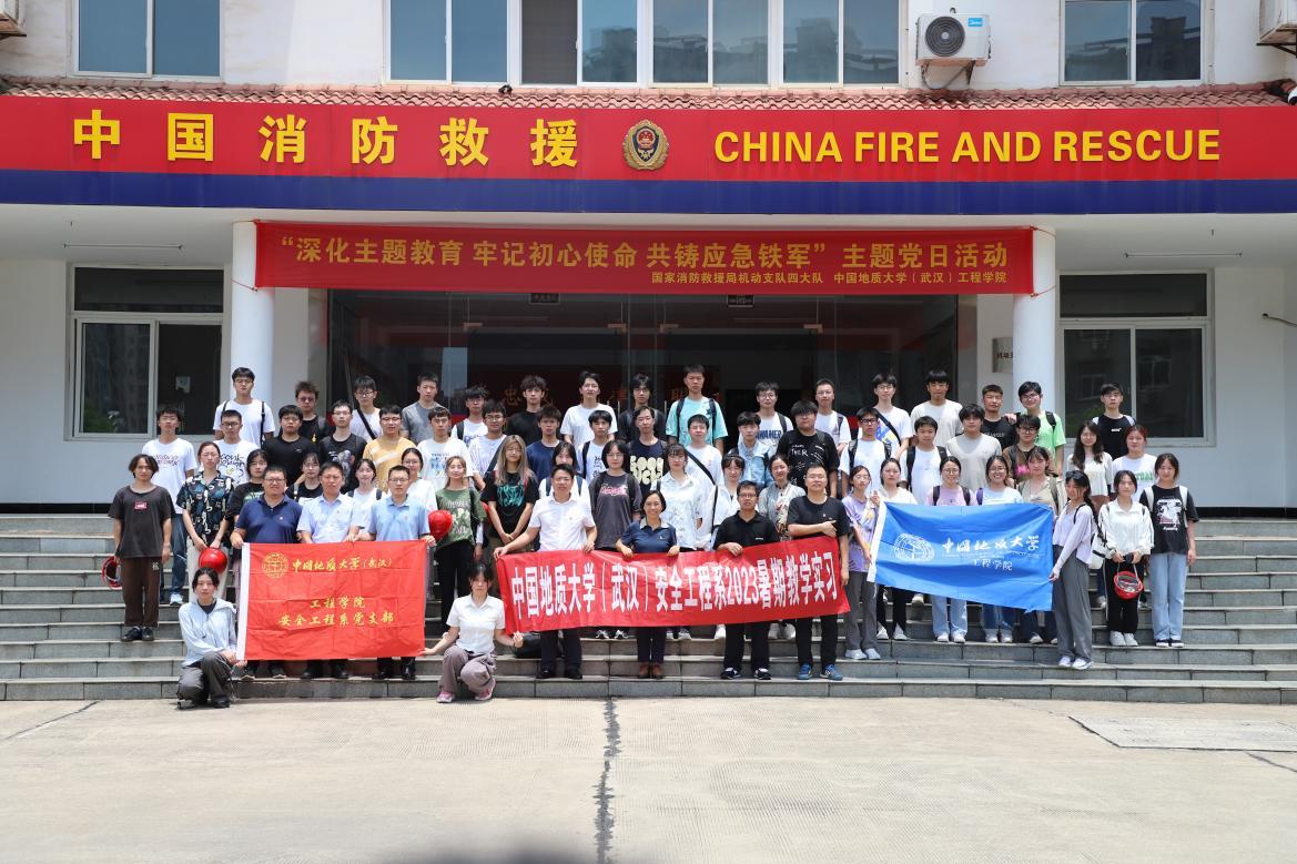 为学习全国先进党组织的建设经验,促进党建教育与科研合作、人才培养有机融合,2023年7月11日上午中国地质大学(武汉)欧美成人精品欧美一级乱黄党委书记李红丽,安全工程系党支部书记周克清、系主任何华刚,安全工程系教师潘海峰、陆凯华、刘浩、胡帆,欧美成人精品欧美一级乱黄055211和055212班全体学生赴国家消防救援局机动支队四大队参加“深化主题教育,牢记初心使命,共筹应急铁军” 联合主题党日活动。