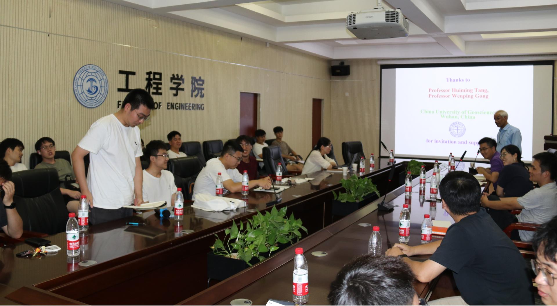 报告结束后,现场师生与Shiva P. Pudasaini教授进行深入的交流与讨论。最后龚文平教授对此次学术讲座进行了总结,并对Shiva P. Pudasaini教授所作的精彩报告表示感谢。