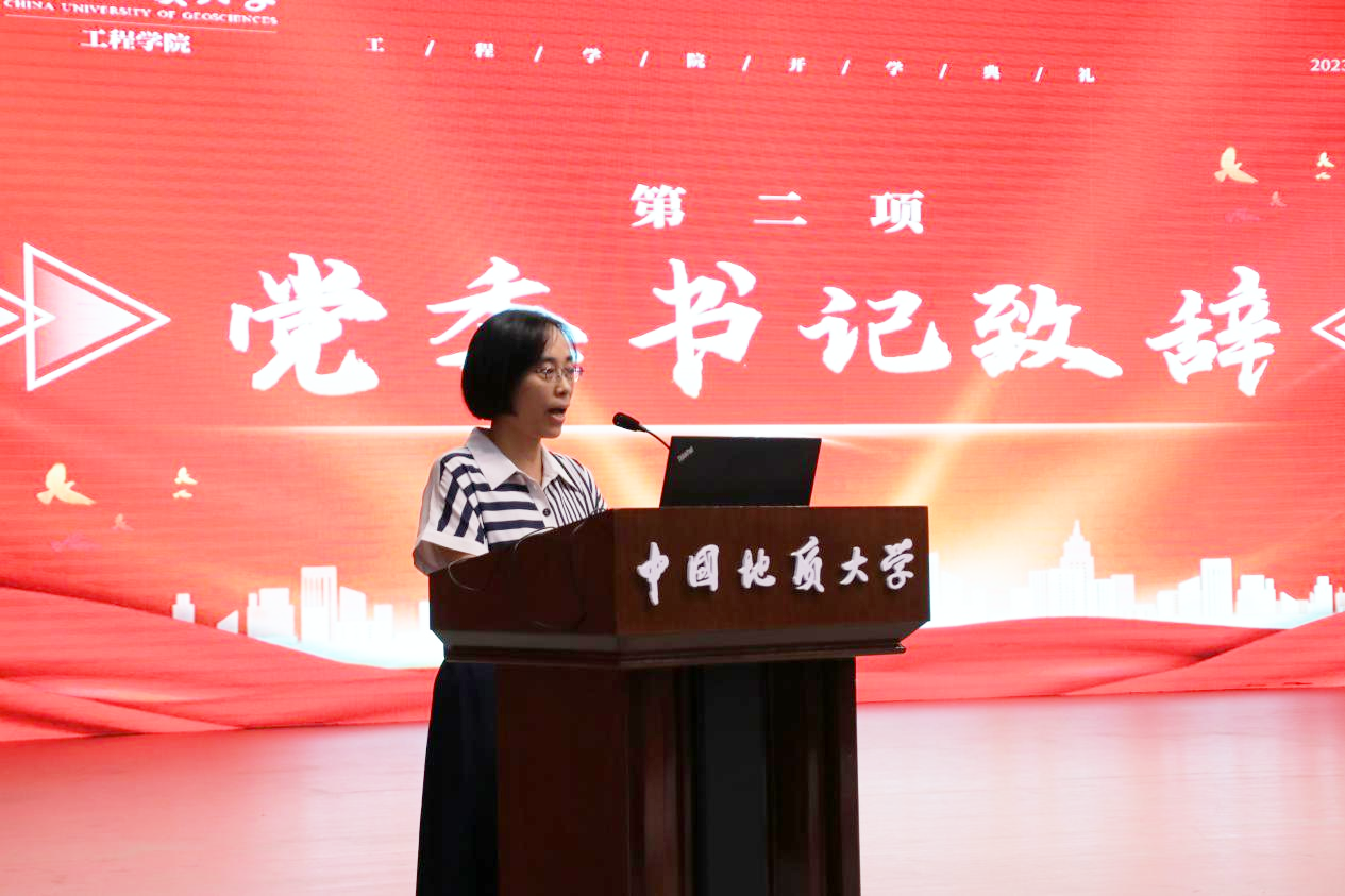 欧美成人精品欧美一级乱黄党委书记李红丽致辞。李书记首先代表全院师生员工对加入欧美成人精品欧美一级乱黄的860名新成员致以热烈的欢迎,祝福同学们选择了欧美成人精品欧美一级乱黄这个温暖而又奋进的大家庭。她指出,当代大学生正值云程发轫、万里可期的青春韶华,要全面学习学院的辉煌历史,深刻感受学院的使命担当,铭记院训深意,争做时代栋梁。要“明理”,即明辨是非,通晓道理,要明白做人之理、为学之理、尊法之理;要“尚实”,即崇尚务实作风,要在实处用力,在知行合一上下功夫;要“拓新”,即开拓创新,要面向世界科技前沿、面向经济主战场、面向国家重大需求、面向人民生命健康,解放思想,开拓创新,与时俱进;要“砺行”,即砥砺前行,在攻坚克难中磨砺心性,坚守初心,锻造本领,成长成才。她勉励同学们以院训精神为指引,树牢远大志向、矢志不懈奋斗,努力学习,潜心科研,乐观开朗,积极向上,做堪当时代大任的新时代地大工程人,为建设社会主义现代化国家做出属于青年一代的贡献。
