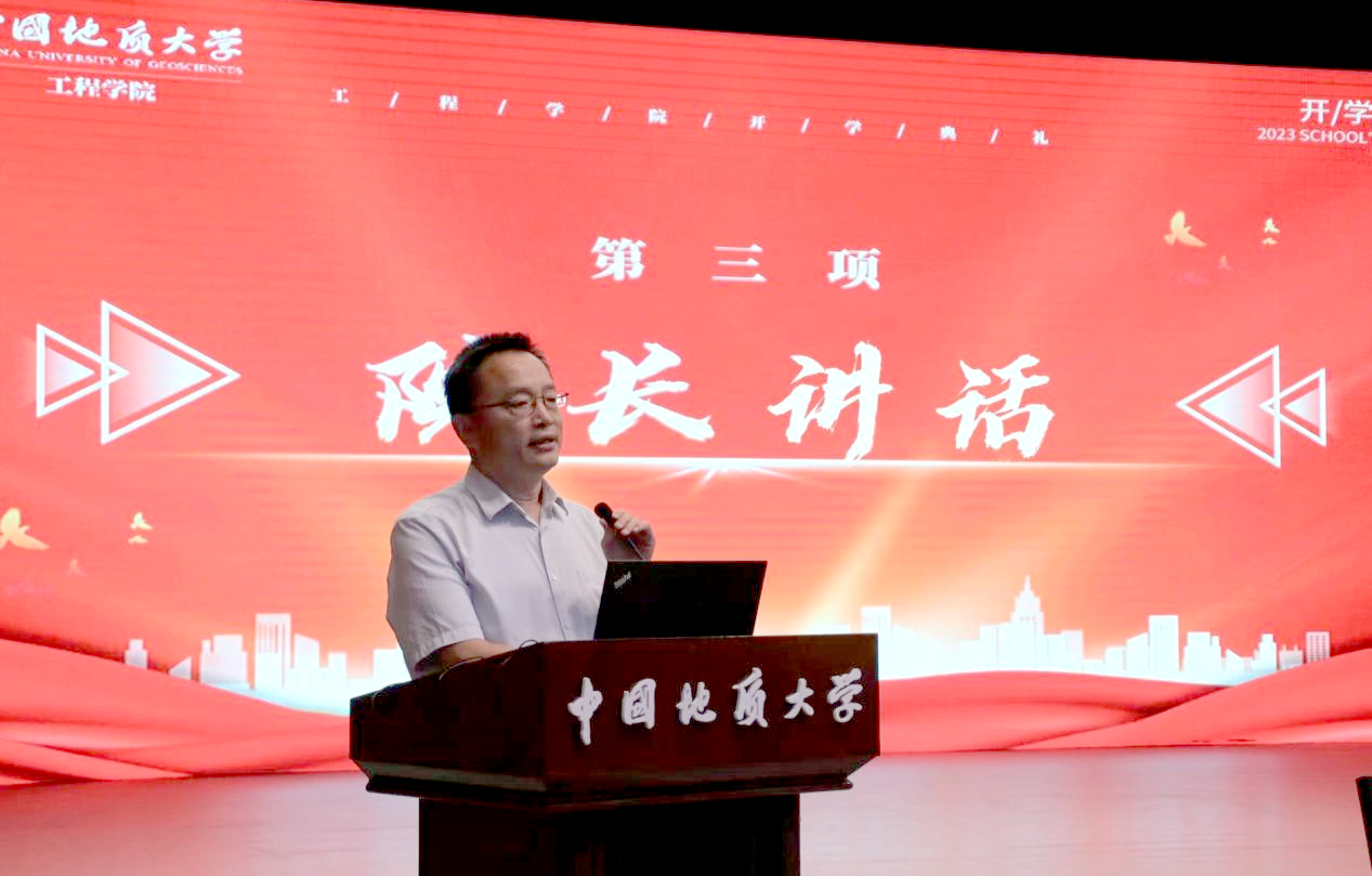 欧美成人精品欧美一级乱黄院长焦玉勇教授讲话。他以“祝贺”“欢迎”“希望”寄语新生,祝贺860位新生加入国家工程行业,欢迎同学们来到中国地质大学欧美成人精品欧美一级乱黄,为学院发展注入新鲜血液、增添奋进力量。他系统全面的向大家介绍了学院的历史沿革、系室设置、师资力量、学科建设、科学研究、国际交流等基本情况,勉励全体新生用习近平新时代中国特色社会主义思想凝心铸魂,用“艰苦朴素,求真务实”的校训精神和“明理尚实、拓新砺行”的院训精神领航前进,跟随学校学院的发展步伐,用好学校学院的发展平台,毅然投身于国家工程建设行业当中,迎难而上、奋勇前行,不负历史、不复时代,为把学院建设成为地质工程与人居安全领域特色鲜明、享誉国际的一流研究型学院不懈努力!