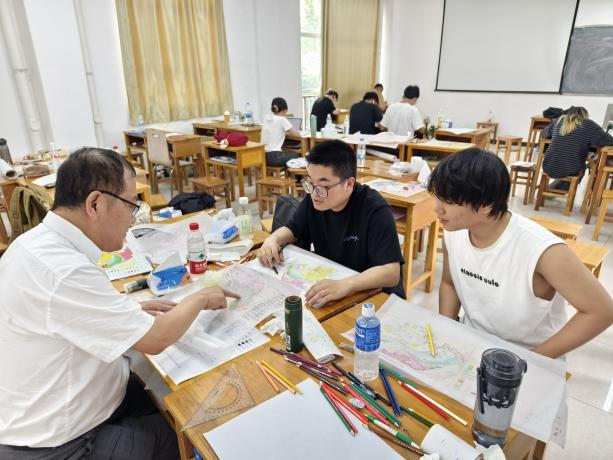 王亮清等一行来到教室看望学生,他细心指导同学们进行实习地层剖面实测与剖面图柱状图的制图,与同学们交流实习的所感所获,他表示,周口店实践教学基地被誉为“地质工作者的摇篮”和“天然的地质百科全书”,在实习站走过的70年光辉历程中,无数的地大师生曾在这里同吃、同住、同学、同研,不仅培养了一批批地质领域的拔尖创新人才,更孕育出“山河为师、启智育德、力行悟道、地质报国”的摇篮精神,希望全院实习生以地质前辈为榜样,以摇篮精神为指引,紧扣国家地质人才战略需求和学校地质工程专业人才培养方案,将课堂学习和野外实习深度融合,在一锤一锤的磨砺里和一步一步的攀登中感悟历史荣光、收获时代成长,通过学习和实践提高站位、拓宽视野、创新思路、解决问题,争做有理想、敢担当、能吃苦、肯奋斗的新时代地质工程好青年。