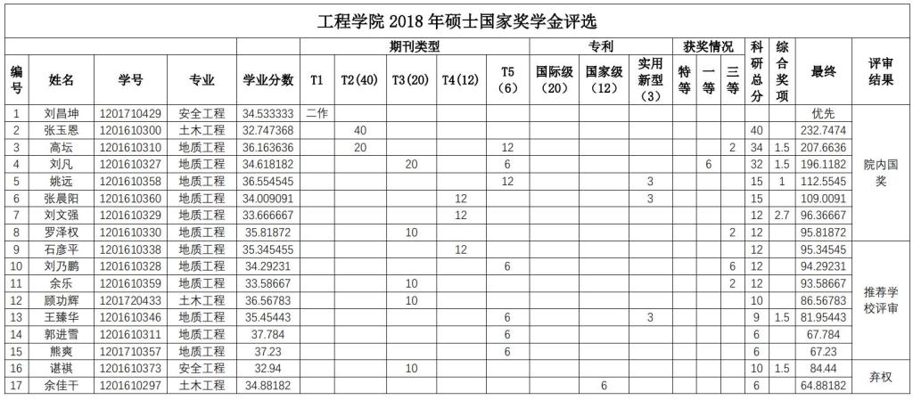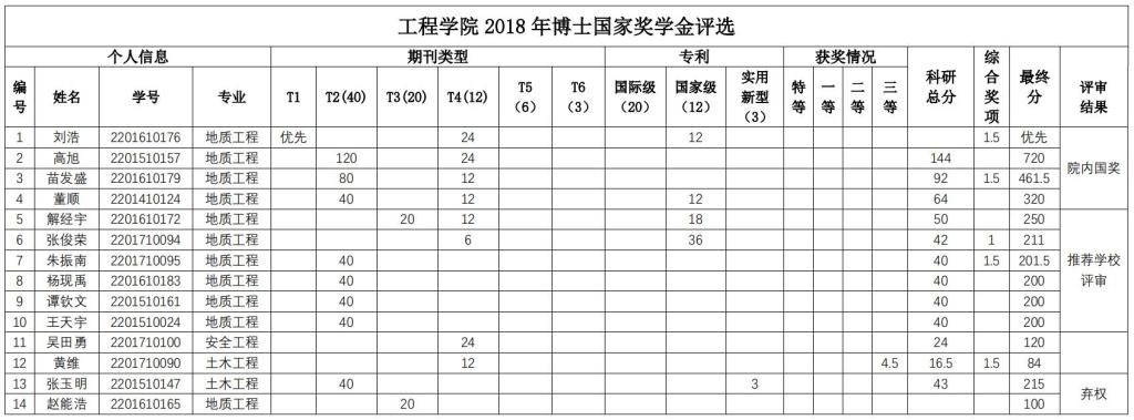 经个人申报,学院研究生国家奖学金评审委员会秘书处资格审查,学院研究生国家奖学金评审委员会于2018年9月29日下午组织通过资格审查的申报者(其中博士研究生14人,硕士研究生17人)进行答辩评审,学院研究生国家奖学金监审委员会全程监督。会议确定了刘昌坤等8名硕士研究生,刘浩等4名博士研究生为欧美成人精品欧美一级乱黄2018 年研究生国奖学金候选人。现将欧美成人精品欧美一级乱黄 2018 年国家奖学金候选人公示(见下表)。