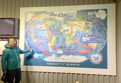 本次活动在中国地质大学(武汉)逸夫博物馆开展,主要参观学习我校“7+2”登山科考活动事迹展览。活动得到了校体育课部的大力支持,董范教授、牛小洪教授亲临现场指导。牛小洪教授从我校悠久的登山历史开始,详细介绍了我校登山队历年的辉煌成就,重点给师生们讲解了我校这次“7+2”科考活动的具体过程和独特经历。