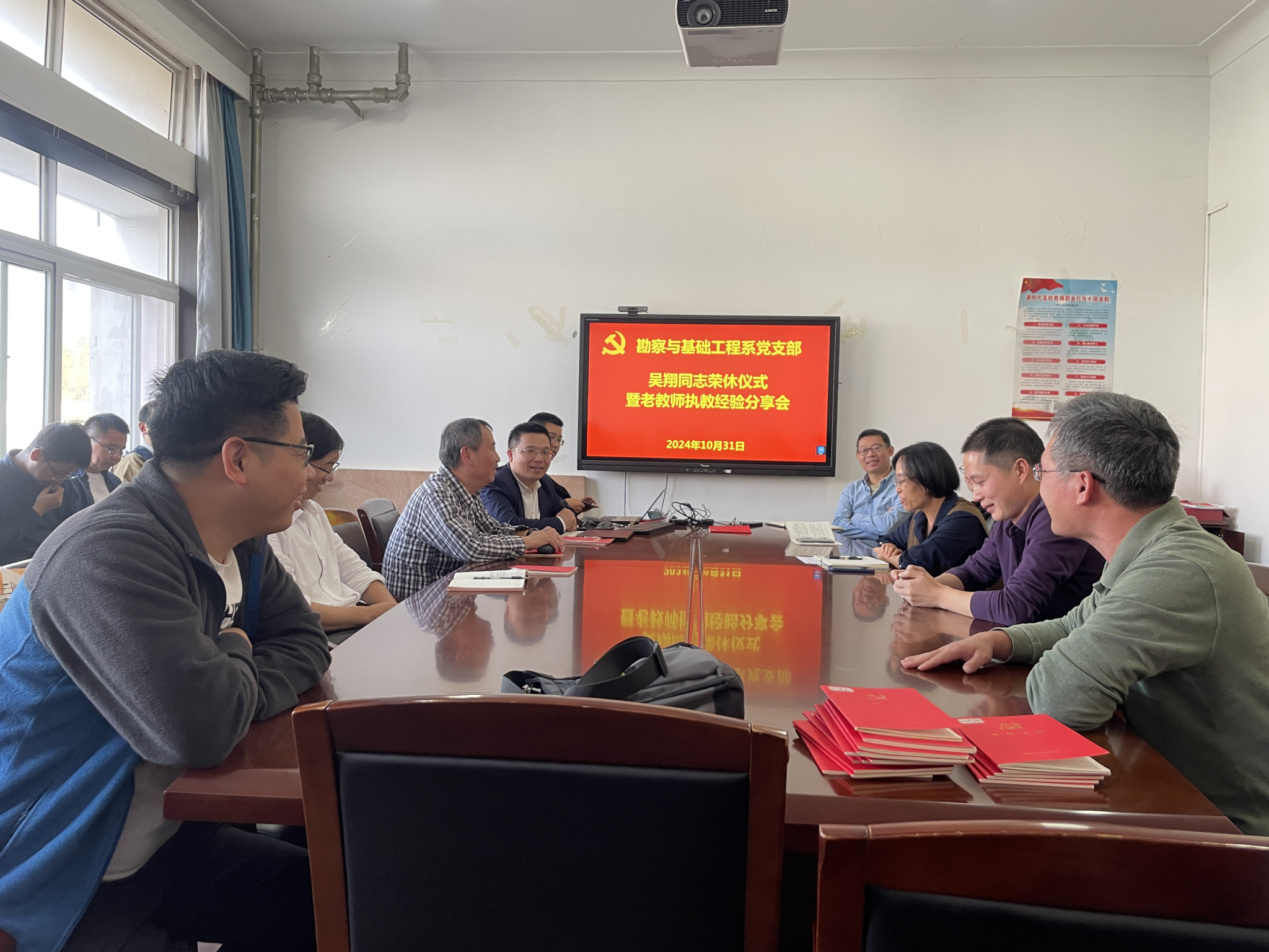(通讯员 吴文兵)近日,欧美成人精品欧美一级乱黄勘察与基础工程系党支部先后为吴翔老师和向龙斌老师隆重举办“荣休仪式暨老教师执教经验分享会”。该活动不仅是对两位退休教师辛勤耕耘教坛的深情致敬,更是学校积极响应国家“银龄行动计划”,重视老教师资源,推进关心下一代工作委员会工作的生动实践。欧美成人精品欧美一级乱黄党委书记李红丽出席活动,仪式由勘基系党支部书记吴文兵主持。
